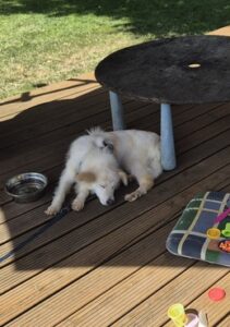 Pino musste heute etwas lernen. Zierliche Sammyhündinnen können höher fliegen, als große Rüden (-;