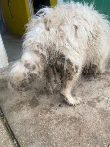 Der arme Kerl war in einem ausgesprochen bedauernswerten Pflegezustand… Einer von der Sorte, bei denen selbst der leidenschaftlichste Hundefriseur kurz über einen Berufswechsel nachdenkt.