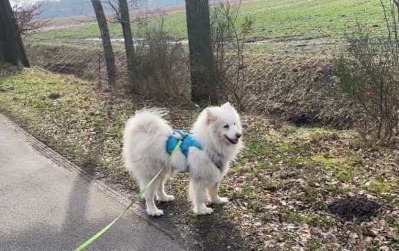 Aber ein geduldiges Kerlchen ist er, hat alles brav über sich ergehen lassen, auch  unangenehme Untersuchungen die nötig waren, da wir eine gutartige Wucherung im Mundraum entfernen lassen mussten. (Es wurde mittels Biopsie bestätigt, dass sie harmlos war.) Die Haare an seiner Rute werden noch nachwachsen. Ich denke er wird sich in einem gemütlichen zu Hause recht wohl fühlen, mit schönen Spaziergängen, aber ohne ernsthafte sportliche Ambitionen.