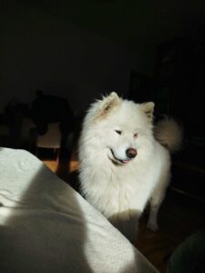 Heute ist sie eindeutig ein „Happy Sammy“. Ich finde gerade bei Samojeden spricht der Gesichtsausdruck oft Bände!