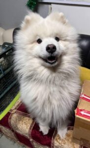 Puschkin, mit dem Bärchengesicht, hat sich für ein Foto auf dem Sofa erwischen lassen 😉