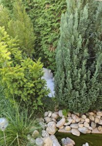 Ansonsten möchte ich noch ein bisschen aus dem Nähkästchen plaudern (-; Wir haben eine WhatsApp Gruppe, in der alle Ansprechpartnerinnen vertreten sind. Zwischendurch erzählen wir uns auch mal etwas aus unserem Alltag, mit SiN Hund. So habe ich z. B. ein Foto von Jaimy eingestellt, wie sie sich vor der Wärme schützt, wenn es unbedingt der Garten sein muss, um ein Nickerchen zu machen.