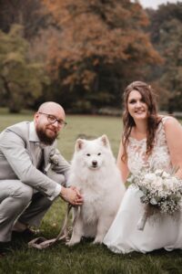 Die beiden hatten bereits ihren Simba an ihrer Seite – und haben ihr Quartett im November 2024 mit unserer Tea vervollständigt. Natürlich wurde auch hier die Hochzeit rundum hundefreundlich geplant. Denn wenn man „Ja“ sagt, dann bitte gemeinsam – mit Fellnase, Ringkissen und ganz viel Herz.