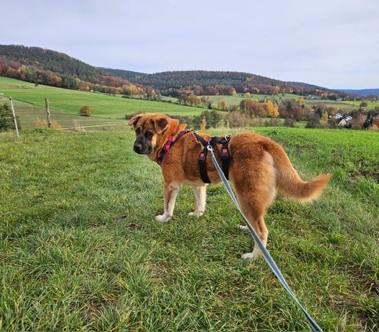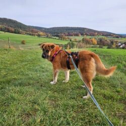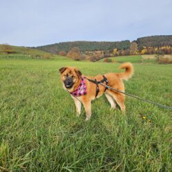 Barney hatte als Welpe einige Mangelerscheinungen weshalb das Wachstum ungleichmäßtig verlaufen ist. In der Pflegestelle wird deshalb derzeit fleissig am Muskelaufbau gearbeitet damit die Proportionen besser werden und sie dann eine richtige Schönheit wird wo Kopf und Körper zusammen passen ;o) Barney liebt ausgedehnten Spaziergängen, manchmal auch mit Joggen und mittlerweile auch toben mit der vorhandenen Hünden. Barney ist im Erstkontakt etwas schüchtern, nach der Kennenlernphase taut sie aber auf und kann richtig witzig werden. Sie ist vom Grundtypus ein sehr angenehmer Charakter der nicht direkt nach vorne prescht sondern erst mal abwartend sich alles anschaut. Barney kann als Einzelprinzessin oder aber auch als 2.Hund vermittelt werden. Auf den Bildern wirkt sie viel größter als sie tatsächlich ist. Derzeit hat sie 20 kg , vielleicht kommt da noch das ein oder andere Kilo drauf aber mit einem Jahr ist sie jetzt schon ausgewachsen von der Höhe her, jetzt geht es nur noch darum den Körper zu Formen. Wer also gerne einen chilligen gemütlichen Hund für lange Spaziergänge möchte für den ist Barney genau richtig. Ein Supersportler ist sie nicht, genießt aber Spaziergänge sehr. Barney kann gut mit Kindern und würde gerne in ein zuhause ziehen wo sie nicht so viel alleine ist, weil das klappt gerade noch nicht so sehr gut. Dafür würde sie sich sehr gut als Bürohund eignen. Barney kann in Deutschalnd in der Nähe von Aschafenburg auf ihrer Pflegestelle nach Terminabsprache gerne besucht werden.