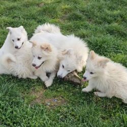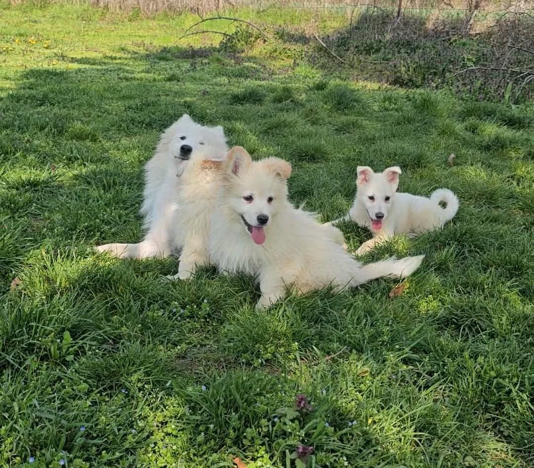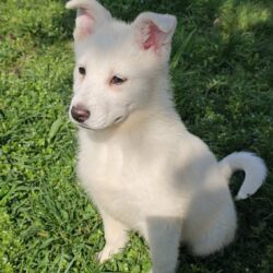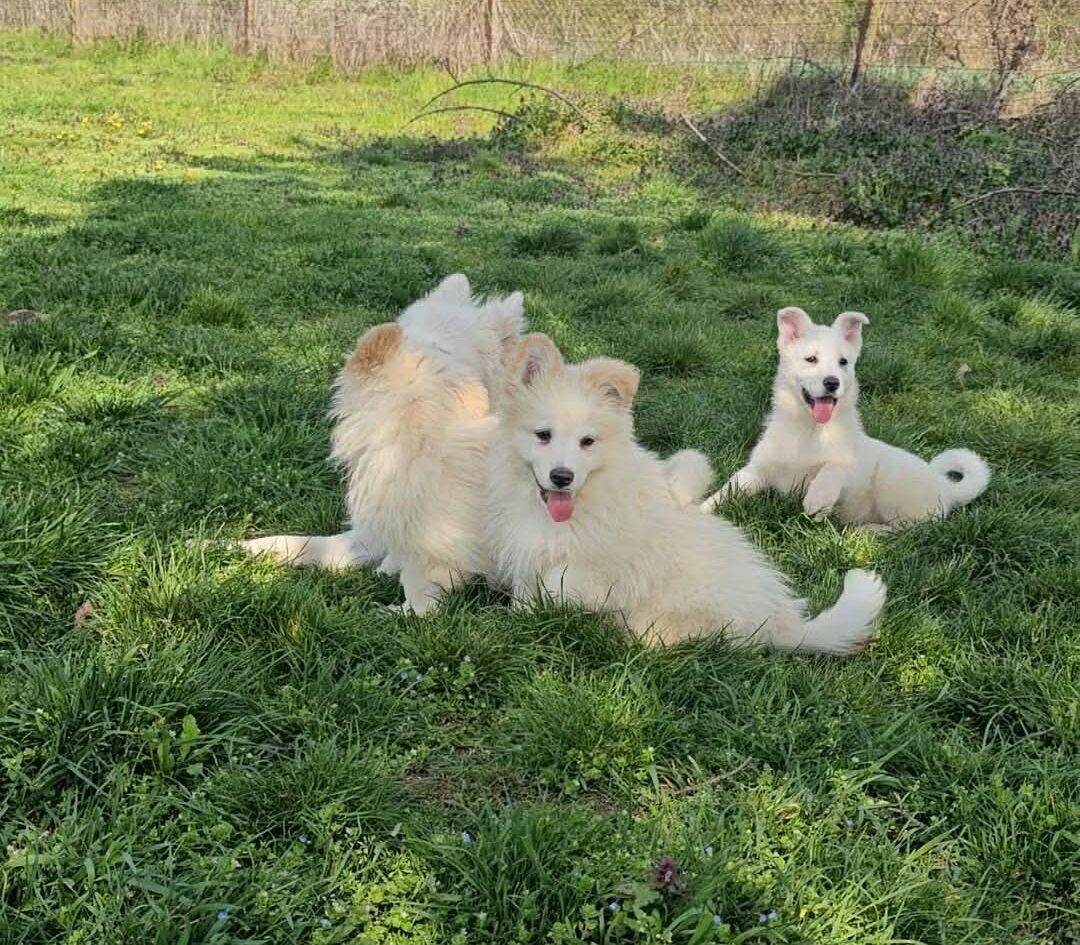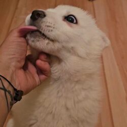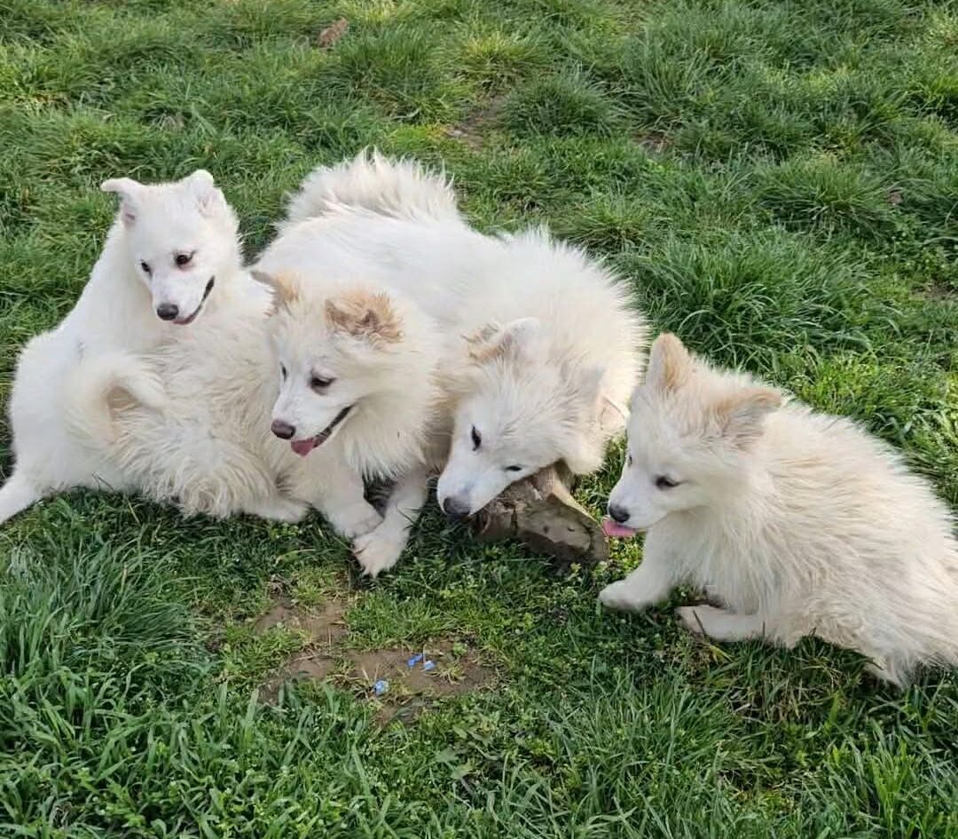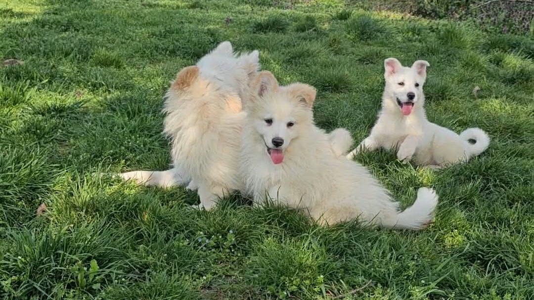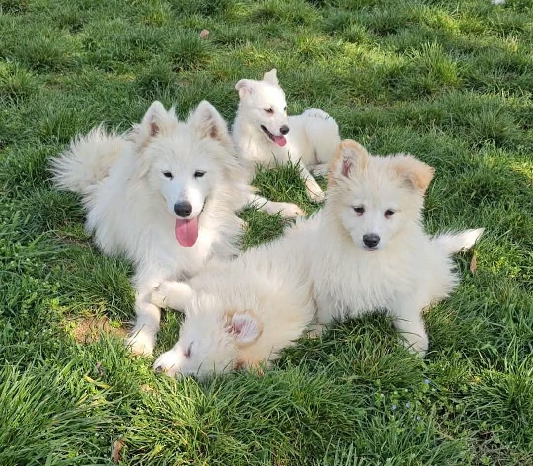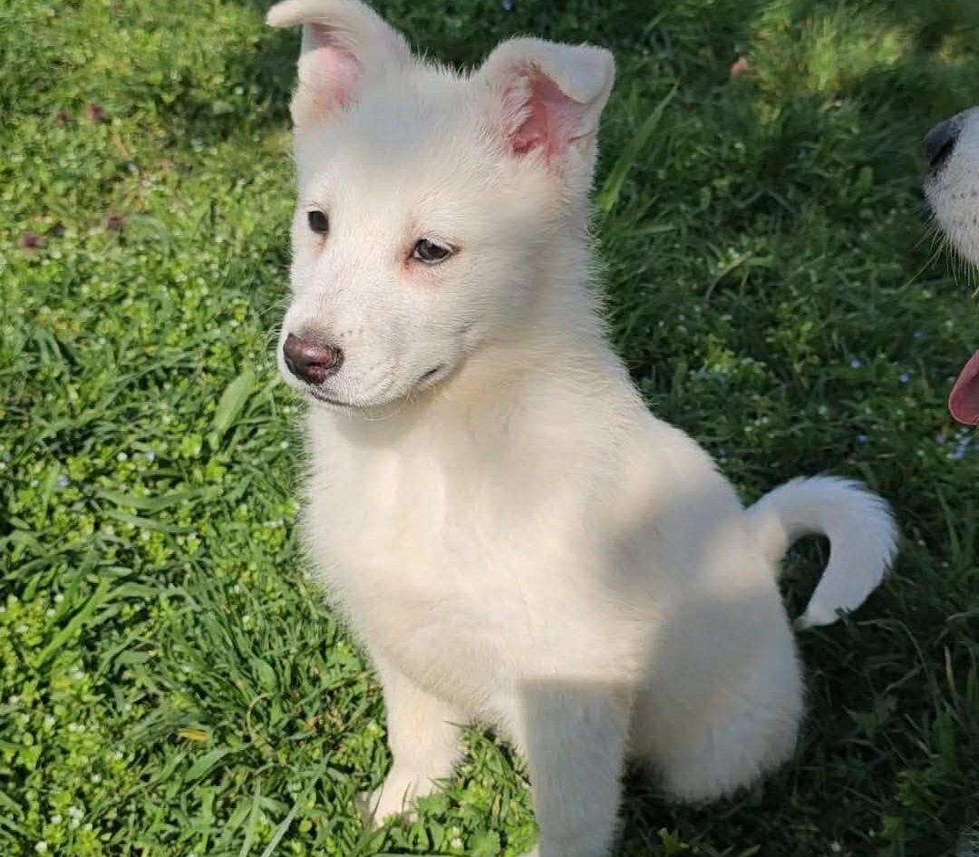 Die kleine Bluebell ist eine Samojeden-Mix-Welpin, geboren ca. im Januar, und die mutige Schwester von Nikita und Findus. Als kleine Draufgängerin weiß sie genau, wie sie sich gegen ihre zwei Brüder durchsetzt.