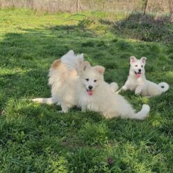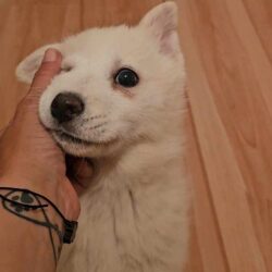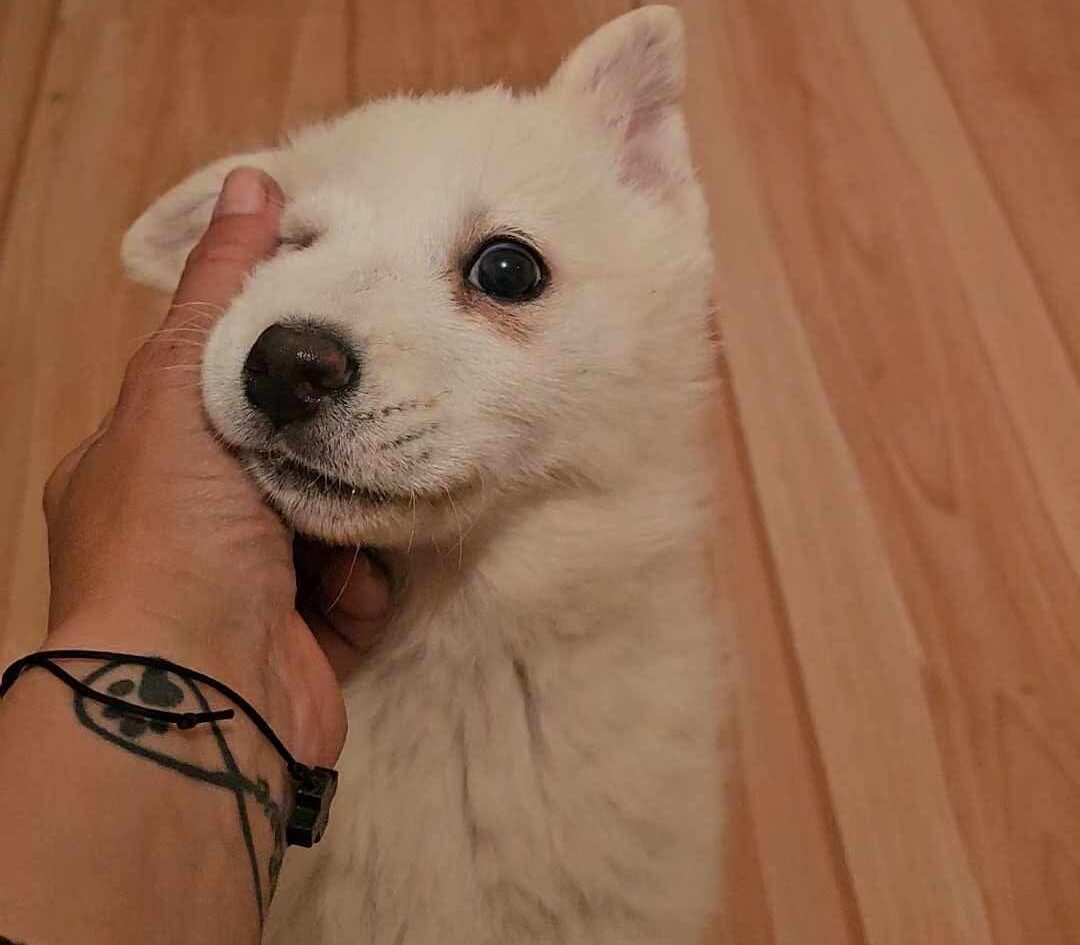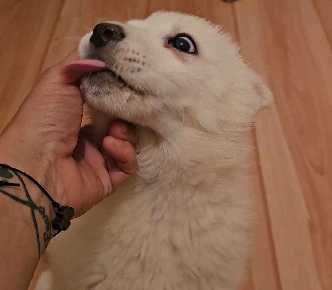 Ihre Mama ist eine Samojedin und lebt bei uns in unserer Obhut. Wer der Vater ist? Ein echter Straßenkasanova  – wir sind also gespannt, was für eine besondere Mischung in ihr steckt.