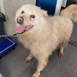 Lewi (ca. 4–5 Jahre) ist vermutlich ein Samojeden-Mischling mit einer bewegten Vergangenheit. Er wurde in einem Wald bei Istanbul gefunden und wird aktuell bei unseren Tierschützern versorgt. Lewi hat Ehrlichiose (eine durch Zecken übertragene Infektion), wird aber bereits behandelt und erholt sich gut.