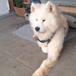 Er kam mit einer hässlichen Rückenverletzung (von einer Kette?) in unsere Obhut. Das inzwischen wieder nachwachsende Fell lässt es noch erahnen. Ansonsten ist MaxMax Miki ein stattlicher, schöner Rüde,