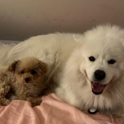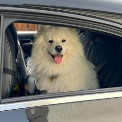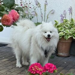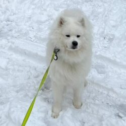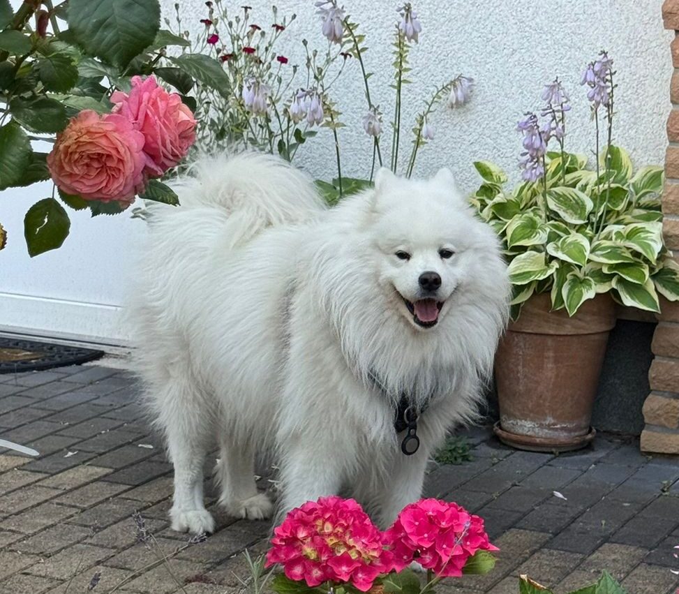 Merlin ist ein netter Samojedenrüde, aufgeschlossen und freundlich zu allen Menschen, lieb zu Kindern, allgemein verträglich Artgenossen…ein unkomplizierter Vertreter seiner Rasse.
