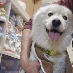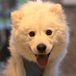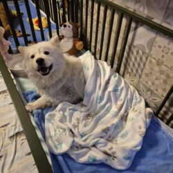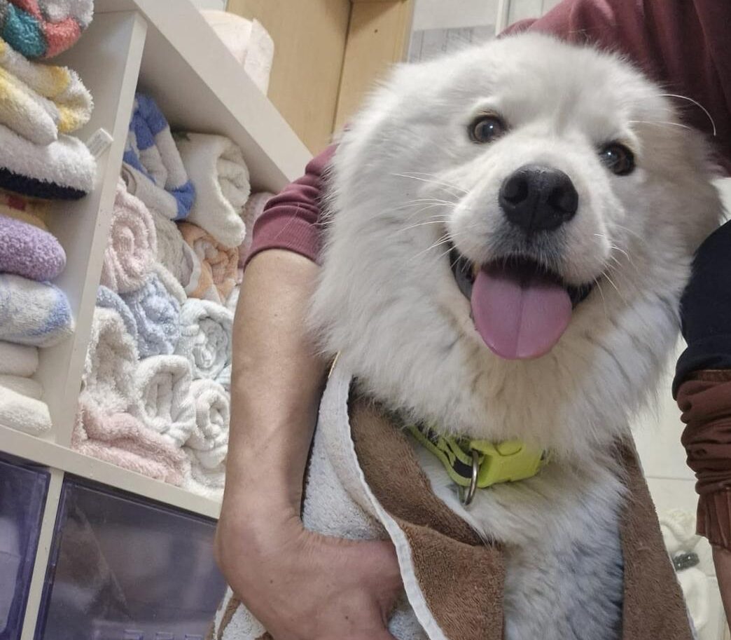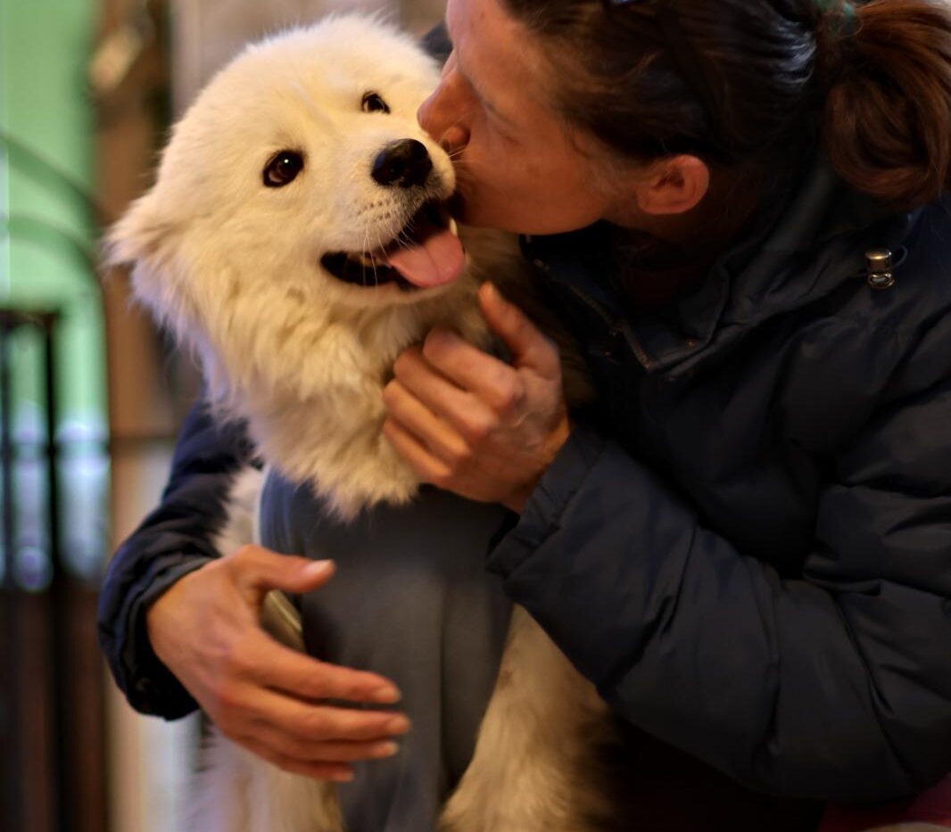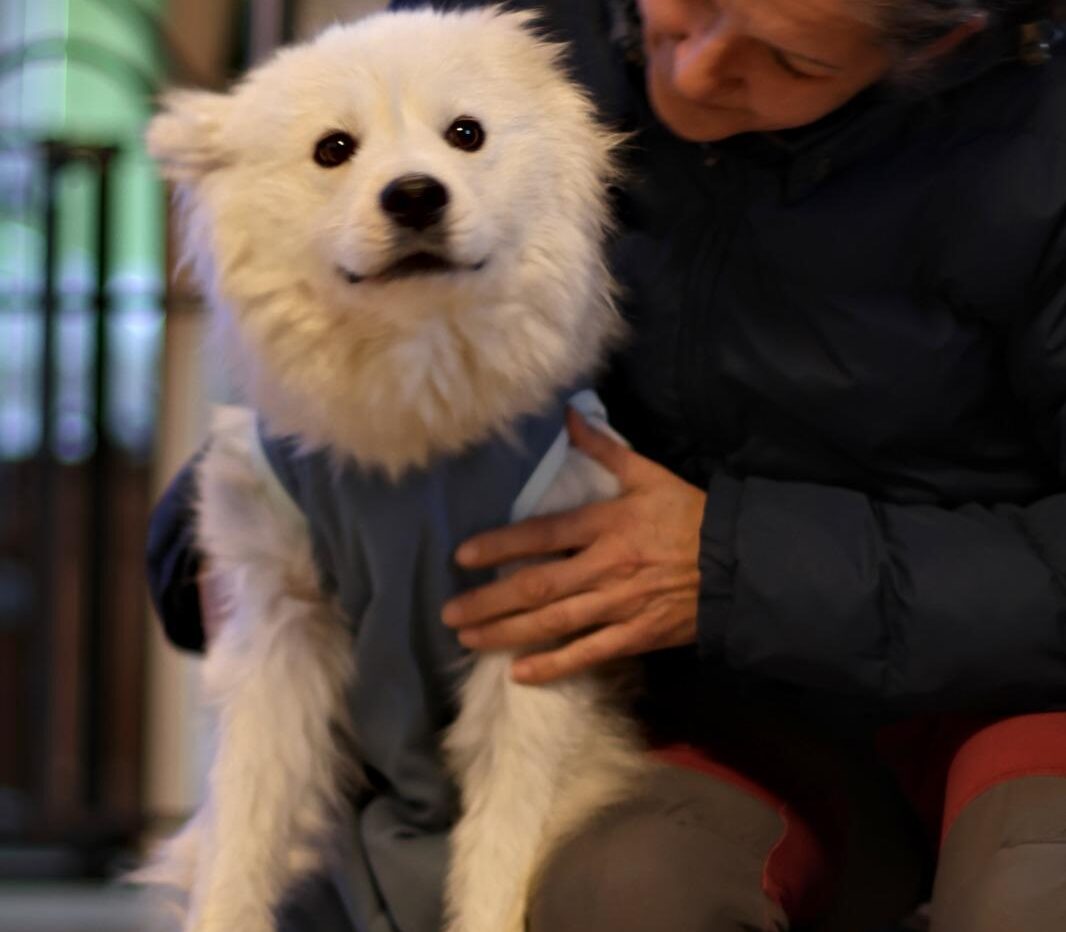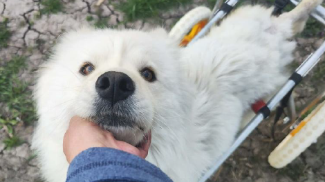 Mimi ist ein Samojede im Rolli – und sie fährt das Ding nicht einfach… sie rockt das Ding.