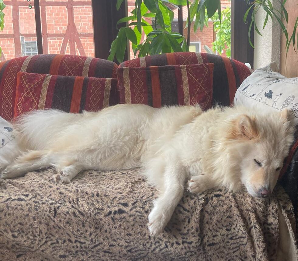 … Menschen, die Hundeerfahrung haben und sich von ihrem manchmal auftretenden ‚Sturkopf‘ (bläuliche Zunge, Chow-Anteil?) nicht beirren lassen sondern mit einem Grinsen im Gesicht denken, ach komm Schätzele, muß das jetzt sein ;o)